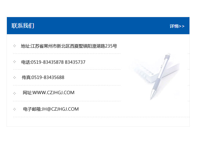 傳真:0519-83435688    郵編:213135    網址:WWW.czjhgj_com.bgmxjm.com    電子郵箱:JH@czjhgj_com.bgmxjm.com